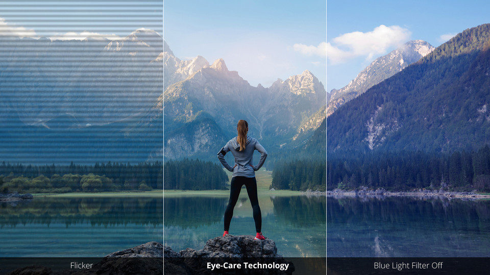 Màn hình tích hợp công nghệ Chống nhấp nháy và Bộ lọc ánh sáng xanh giúp bảo vệ đôi mắt của bạn khỏi nhức mỏi mắt